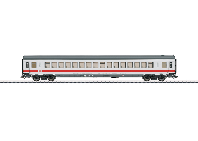 Modell: Serienmäßig eingebaute LED-Innenbeleuchtung und Strom führende Kupplungen. Die Innenbeleuchtung funktioniert im Verbund mit dem IC-Steuerwagen und kann über einen Decoder im Steuerwagen digital ein- und ausgeschaltet werden. Stirnseitig rot transparente Schlusslicht-Einsätze an den Wagenenden. Typspezifisch gestaltete Schürze. Drehgestelle nach Bauart Minden-Deutz schwer, vorbildentsprechend mit Scheibenbremsen, Magnetschienenbremse und Schlingerdämpfer. Aufgedruckte Wagenlaufschilder. Befahrbarer Mindestradius 360 mm. Länge über Puffer ca. 28,2 cm.
