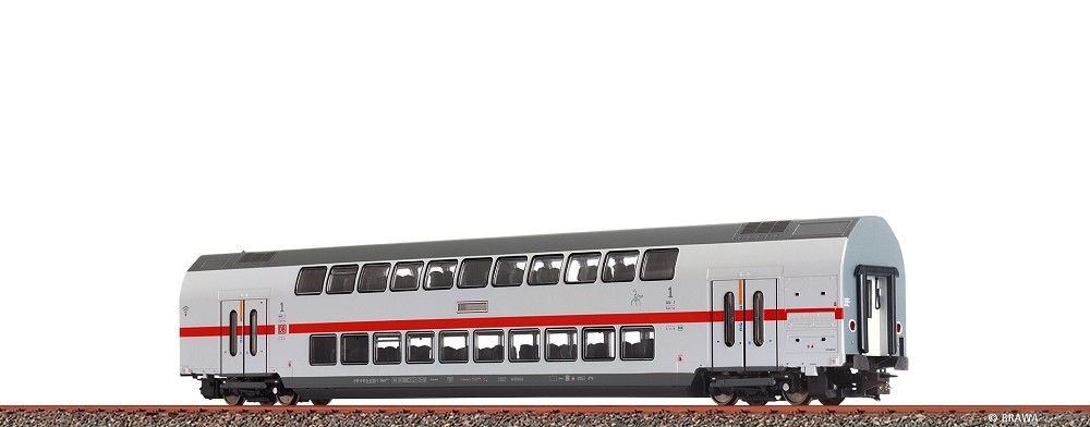 H0 TWINDEXX Vario® IC2-Doppelstock-Mittelwagen 1. Kl. DB AG (Karlsruhe Hbf)ModelldetailsExakt im Maßstab 1:87Vorbildgerechte Länge über KupplungAufbau aus hochwertigem, schlagzähem KunststoffBodenplatte aus MetallBedruckte FensterrahmenPassgenau eingesetzte FensterMaßstabsgetreue DetaillierungExtra angesetzter ScheibenwischerDreidimensionale Front originalgetreu wiedergegebenMehrteilige DrehgestelleFeinste Bedruckung und LackierungLackierung auf BRAWA TRAXX Ellok BR 146.5 abgestimmtVollständige Inneneinrichtung, inkl. FührerstandKurzkupplungsaufnahme nach NEMLichtwechsel rot/weiß, in Fahrtrichtung wechselndAchsen in Metall gelagertTWINDEXX Vario® ist ein eingetragenes Warenzeichen.