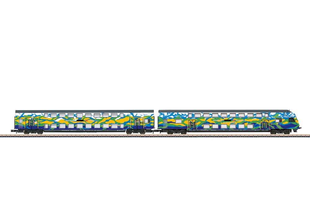 Vorbild: 1 x Doppelstock-Mittelwagen DBpza 753.5 und 1 x Doppelstock-Steuerwagen DBpbzfa 765.6 der DB AG, Geschäftsbereich DB-Gebrauchtzug. Aktueller Zustand der Epoche VI.