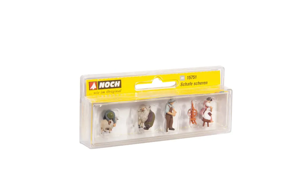 Ab mit der warmen Winterwolle Die Modellbahnfiguren "Schafe scheren" geben einer Landschaft mit einer wirklichkeitsgetreuen Szene ein noch realistischeres Bild. Der Bauer schert seine Schafe bevor die warmen Sommertage kommen und die Schafe grasen auf der Weide, in der prallen Sonne. Mit der warmen Wolle ist die Hitze für die Tiere unerträglich. Im Winter sind sie jedoch froh, von der Wolle gewärmt zu werden. Gestalten Sie diese Szene auf einer Landschaft und beleben Sie diese realitätsnah. In dem Set sind 4 Figuren und 2 Schafe enthalten. 3 Figuren des Sets sind dabei 2 Schafe zu scheren. Eine Frau sitzt auf einem Hocker und spinnt die frisch geschorene Schafswolle. Sie hat zur Hilfe ein braunes Spinnrad. Die Figuren tragen alle bäuerliche Kleidung mit Kopfbedeckung und Latzhosen oder Schürzen.