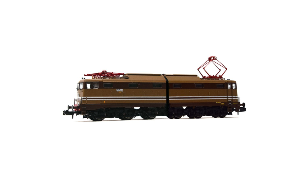 FS, schwere sechsachsige Elektrolokomotive der Reihe E.645 in „Castano/Isabella“-Farbgebung mit Aluminiumzierstreifen, schwarzen Drehgestellen und großen Trittstufen, Ep. IV, mit DCC-Sounddecoder