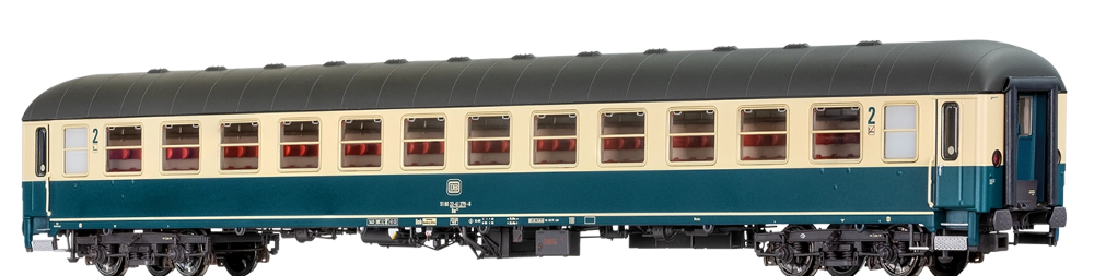 H0 Schnellzugwagen Bm234 DBInnenbeleuchtung ACModelldetailsMaßstäbliche Nachbildung der FensterRadsätze der Bauart 094/096 mit beidseitig gewellten RadscheibenEpochengerechte InneneinrichtungInnenbeleuchtung vorbereitet bzw. eingebautGummiwulst am Übergang gefedertKurzkupplungskinematikLichtmaschine am Drehgestell extra angesetztExtra angesetzte Tritte und GriffstangenAusführung der auf Stoß geschweißten DächerKompatibel mit der elektrischen Kupplung aus dem BRAWA-Sortiment