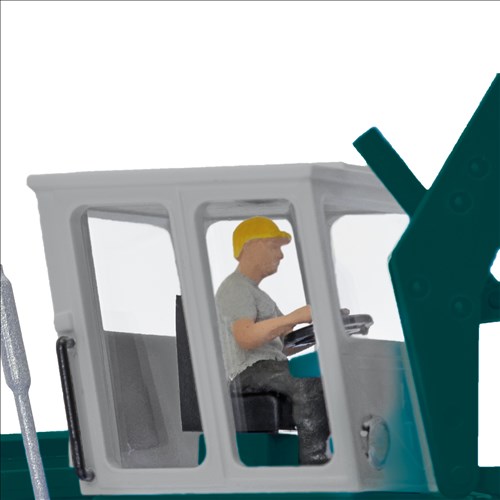 TIH 445 Schlepper mit Fahrer und BetonrohrBlaugrüner Schlepper Mobilkran TIH 445 ausgerüstet mit Lasthaken. Der robuste Alleskönner transportiert ein Betonrohr und hat sogar eine Fahrerfigur mit Schutzhelm im Innern des Fahrerhauses. Die voll funktionsfähige und bewegliche Miniatur lässt keine Wünsche offen und bereichert durch ihre vielen liebevollen Details jede Modellsammlung.