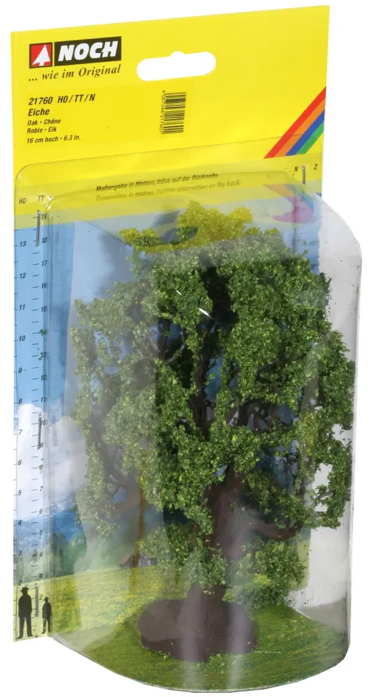Landschaftsszenen realgetreu mit hochwertigen Bäumen ausgestalten Die NOCH "Eiche" eignet sich ideal dafür, um landschaftliche Szenen auf ener Modelllanschaft noch wirklichkeitsgetreuer und idyllischer auszugestalten. Bäume gibt es in der realen Natur sehr viele. Diese geben einer Landschaft das idyllische und realgetreue Aussehen. Das darf also auch auf keiner Modelllandschafts fehlen, die so wirklichkeitsgetreu und realistisch wie möglich nach gestaltet werden soll. Bringen Sie mit der "Eiche" ein Detail auf Ihre Modelllandschaft, welches nicht fehlen darf. Neben Buchen, Birken, Linden, Kastanien und vielen weiteren Bäumen gestaltet die "Eiche" eine Landschaft mit noch mehr Realität aus. Ob im Garten, auf dem Feld, im Park oder auf dem Bauernhof - sehr vielseitig einsetzbar findet die "Eiche" den perfekten Platz auf jeder Modelllandschaft unter den anderen Baumarten. Seit 2010 produziert NOCH seine Modellbäume im eigenen Werk in Vietnam. Dadurch wurde es möglich, die bekannten PROFI-Bäume in der Qualität deutlich zu verbessern. Die Stämme der Bäume werden aufwändig handkoloriert, so dass keine glänzenden Plastikoberflächen zu sehen sind. Um dem Baum mehr Volumen zu verleihen, wird vor der Beflockung ein feines Gespinst in das Astwerk eingearbeitet. Als Flockmaterial kommt das hochwertige NOCH Laub zum Einsatz. Das speziell gemahlene und aufwändig kolorierte Material gleicht in Form und Farbe dem Blattwerk der Originalbäume. Wie in der Natur tragen auch bei den NOCH Modellbäumen nur die feinen Äste Blätter. Die dicken Äste werden in der aufwändigen Beflockung von Hand ausgespart. Die komplett überarbeitete NOCH PROFI-Baumserie wird höchsten Ansprüchen an Qualität und Realitätstreue gerecht. Überzeugen Sie sich selbst davon.
