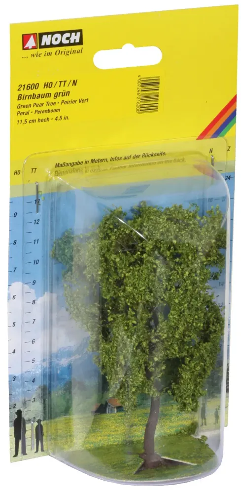 Frische, leckere Birnen direkt vom Baum! Der NOCH "Birnbaum" findet sich ideal in jeder bereits gestalteten Landschaft wieder. Frisches Obst, ob Äpfel, Birnen, Kirschen, Mirabellen, Zwetschgen oder auch Pflaumen - viele Menschen pflegen den eignen Onstbaum im Garten, um im Sommer frisches Obst zu haben. Die weißen Blüten bringt der Frühling mit sich und ehe man schaut hat der Baum schon seinen wunderschönen reifen Obstsorten herangereift. Gestalten Sie mit dem "Birnbaum" eine idyllische Landschaft nach mit realgetreuen Szenen. Seit 2010 produziert NOCH seine Modellbäume im eigenen Werk in Vietnam. Dadurch wurde es möglich, die bekannten PROFI-Bäume in der Qualität deutlich zu verbessern. Die Stämme der Bäume werden aufwändig handkoloriert, so dass keine glänzenden Plastikoberflächen zu sehen sind. Um dem Baum mehr Volumen zu verleihen, wird vor der Beflockung ein feines Gespinst in das Astwerk eingearbeitet. Als Flockmaterial kommt das hochwertige NOCH Laub zum Einsatz. Das speziell gemahlene und aufwändig kolorierte Material gleicht in Form und Farbe dem Blattwerk der Originalbäume. Wie in der Natur tragen auch bei den NOCH Modellbäumen nur die feinen Äste Blätter. Die dicken Äste werden in der aufwändigen Beflockung von Hand ausgespart. Die komplett überarbeitete NOCH PROFI-Baumserie wird höchsten Ansprüchen an Qualität und Realitätstreue gerecht. Überzeugen Sie sich selbst davon.